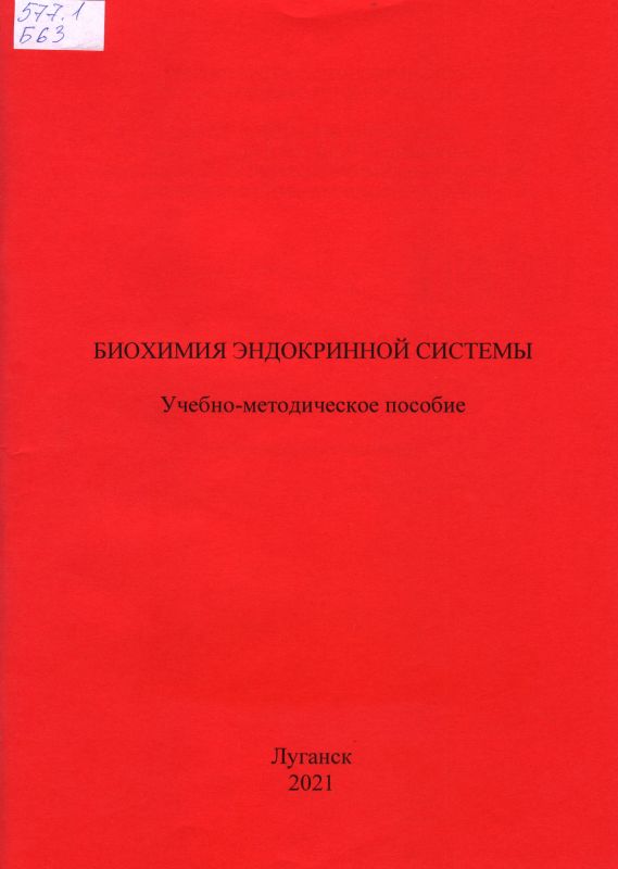 Б63 Биохимия эндокринной системы: учеб.-метод. пособие / сост. Е. А. Благодаренко. – Луганск: [б. и.], 2021. – 68 c.